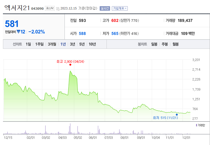 엑서지21 주가 분석