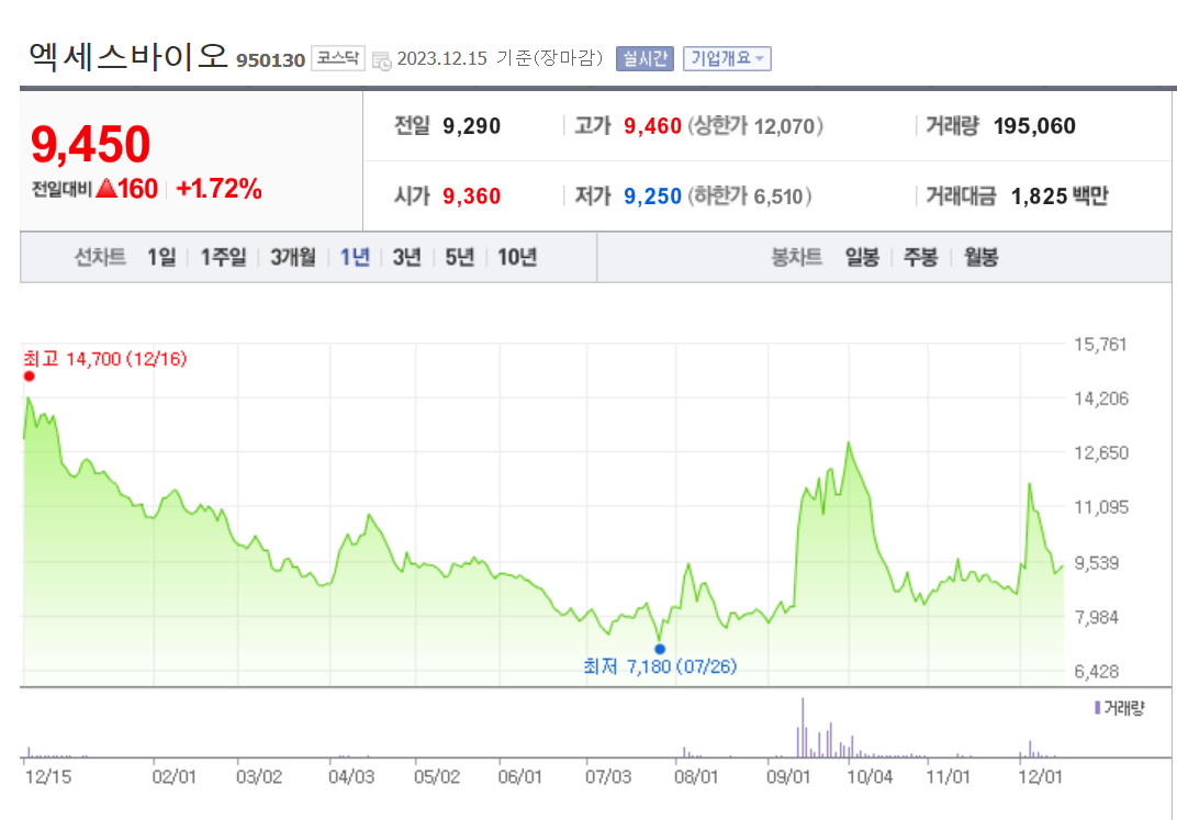 엑세스바이오 현재 주가는 9,450원이며 전일 대비 +1.72%의 모습을 보여 줬으며 동일업종 등락률은 -1.63% 였습니다.. 엑세스바이오의 주주현황을 살펴보면 이 지분 25.26%를 소유하고 있습니다. 엑세스바이오는 의료 장비 및 서비스 기업으로 시가 총액은 3432억 원이며 발행 주식수는 36,315,527주 입니다. 외국인 보유 비중은 5.15% 이며 장중 거래량은 195,060을 기록했습니다. 매출액은 3,124억 원, 영업이익은 4,692억 원을 달성했습니다. EPS는 192원이며 엑세스바이오 주식 배당수익률은 9.22% 입니다.