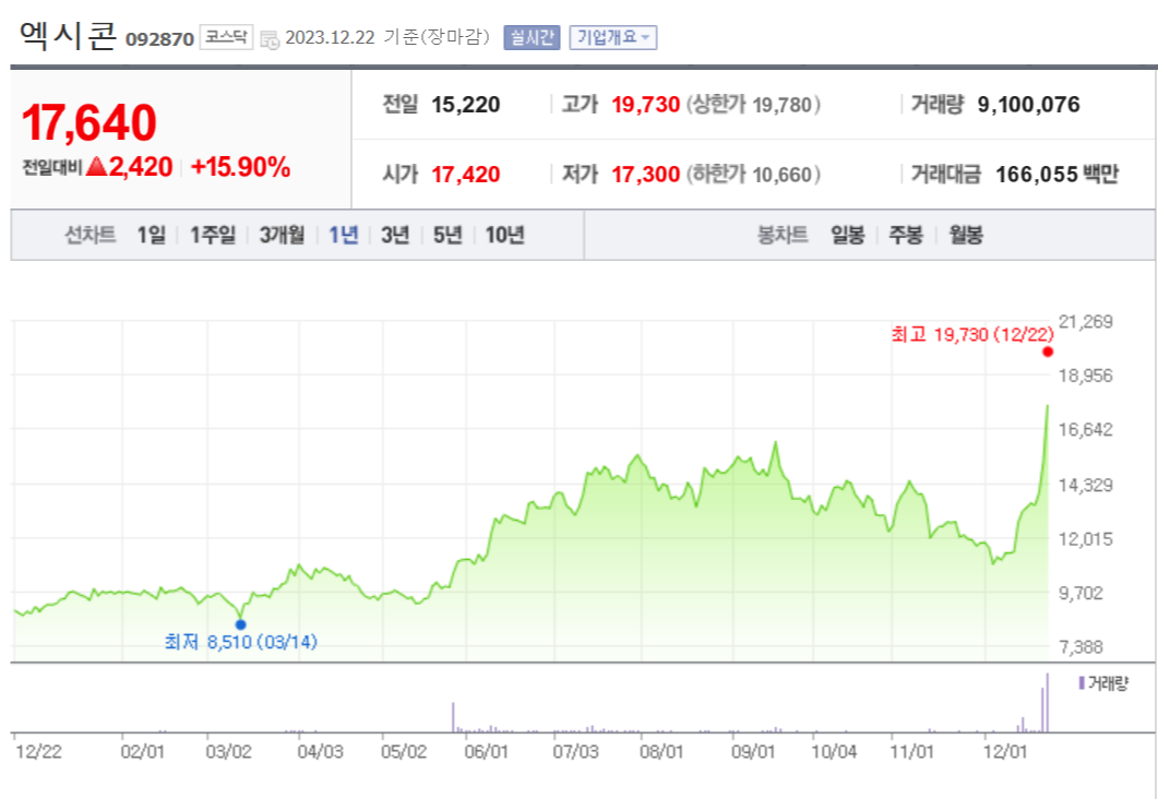 엑시콘는 반도체 및 관련장비 기업입니다. 대표자는 최명배, 박상준 (공동대표) 이며 설립일은 2001/03/08, 주식 상장일은 2015/10/22입니다. 전체 종업원 수는 238명 이고 본사 주소는 경기도 성남시 분당구 판교로255번길 28 , 7층(삼평동, 디에이치케이솔루션빌딩)입니다.