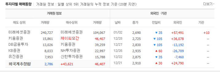 이 때문에 개인 투자자는 기관이나 외국인 세력을 따라 움직이며, 약한 세력에서도 수익을 창출하는 것이 가능합니다. 최근에는 외국인보다 기관 투자자의 움직임을 따르는 것이 더 일반적이며, 외국인의 매수가 불확실하고 개인의 단기 거래가 기관과 유사하기 때문입니다.