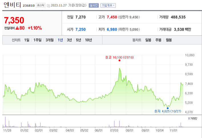 이 글에서는 엔비티 주가 전망과 목표 주가, 기업 정보에 대해서 설명합니다. 주식 투자의 핵심은 현재의 기업 가치보다는 미래의 가치를 예측하며 먼저 대응하는 것입니다. 투자 대상을 결정하기 위해 먼저 현재 기업 상태와 수치를 검토해야 합니다. 엔비티 주식의 주요 현황과 투자 정보를 확인하시고 주식 투자에 유용한 정보들을 한 곳에 정리해두었으니 투자 전에 확인하시기 바랍니다.