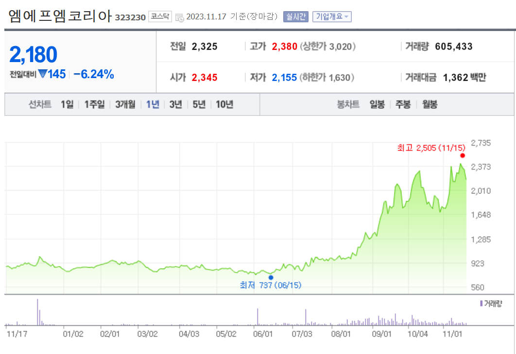이 글에서는 엠에프엠코리아 주가 전망과 목표 주가, 기업 정보에 대해서 설명합니다. 주식 시장에서 중요한 것은 미래의 기업 가치를 예측하고 선제적으로 움직이는 것입니다. 투자 대상을 선택하기 전에 현재 기업의 현황과 데이터를 확인하는 것이 필요합니다. 엠에프엠코리아 주식의 주요 현황과 투자 정보를 확인하시고 주식 투자에 도움이 되는 정보들을 모아 제공하니 투자에 도움을 받으실 수 있을 것입니다.