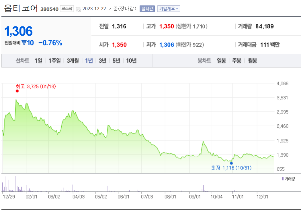 이 글에서는 옵티코어 주가 전망과 목표 주가, 기업 정보에 대해서 설명합니다. 주식 시장에서 핵심은 미래의 기업 가치를 예측하고 선제적으로 움직이는 것입니다. 투자할 종목을 선택하기 전에 현재 기업의 현황과 데이터를 확인하는 것이 필요합니다. 옵티코어 주식의 주요 현황과 투자 정보를 확인하시고 주식 투자에 도움이 될 만한 정보들을 모아 놓았으니 투자를 고려하실 때 참고하세요.