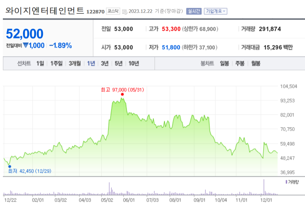 이 글에서는 와이지엔터테인먼트 주가 전망과 목표 주가, 기업 정보에 대해서 설명합니다. 주식 투자에서 핵심은 미래의 기업 가치를 예상하고 선제적으로 움직이는 것입니다. 투자 대상을 결정하기 전에 현재 기업의 현황과 수치를 검토하는 것이 필요합니다. 와이지엔터테인먼트 주식의 주요 현황과 투자 정보를 확인하시고 주식 투자에 유용한 정보들을 모아두었으니 투자 결정에 도움을 받으실 수 있을 것입니다.