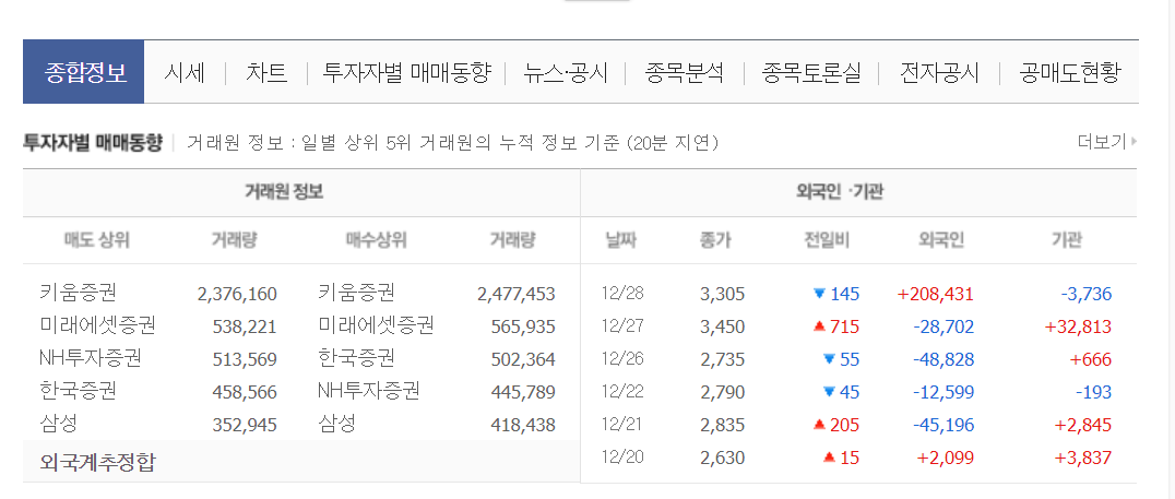 그 때문에 개인 투자자는 기관이나 외국인 세력을 따라 움직이며, 세력이 약해도 어떤 걸 매수하고 매도해 수익을 창출합니다. 최근에는 기관 투자자를 따르는 추세가 더 강해지고 있으며, 외국인의 매수가 불확실하고 개인의 단기 거래 패턴이 기관과 비슷하기 때문입니다.