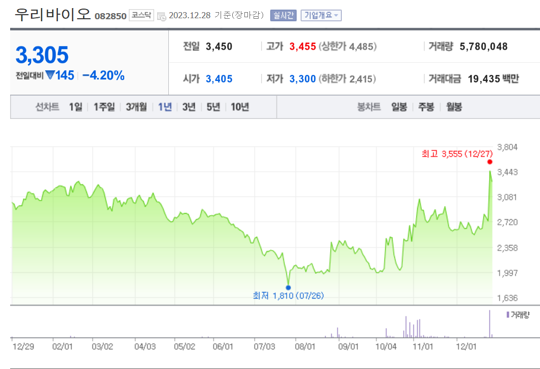 이 글에서는 우리바이오 주가 전망과 목표 주가, 기업 정보에 대해서 설명합니다. 주식 거래에서 중요한 부분은 현재 기업 가치보다는 미래의 기업 가치를 예측하고 먼저 행동하는 것입니다. 투자할 종목을 고르기 전에 현재 기업의 상황과 지표를 살펴보는 것이 중요합니다. 우리바이오 주식의 주요 현황과 투자 정보를 확인하시고 주식 투자에 도움이 될 만한 정보들을 모아 놓았으니 투자를 고려하실 때 참고하세요.