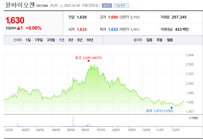 원바이오젠 주가 분석
