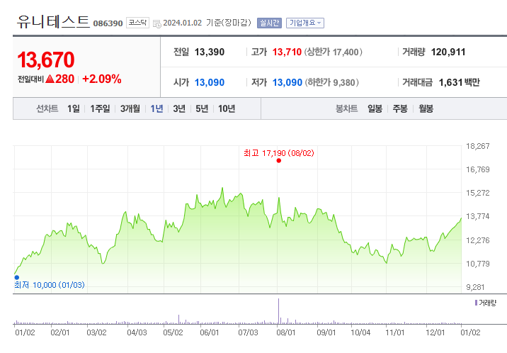 이 글에서는 유니테스트 주가 전망과 목표 주가, 기업 정보에 대해서 설명합니다. 주식 투자에서 핵심은 미래의 기업 가치를 예상하고 선제적으로 움직이는 것입니다. 투자 대상을 결정하기 전에 현재 기업의 현황과 수치를 검토하는 것이 필요합니다. 유니테스트 주식의 주요 현황과 투자 정보를 확인하시고 주식 투자에 도움을 줄 자료들을 모아두었으니 참고하여 효율적인 투자를 해보세요.