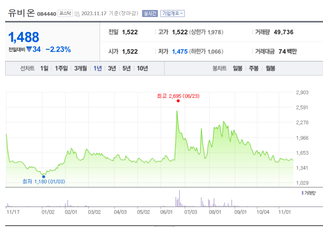 유비온 주가 분석
