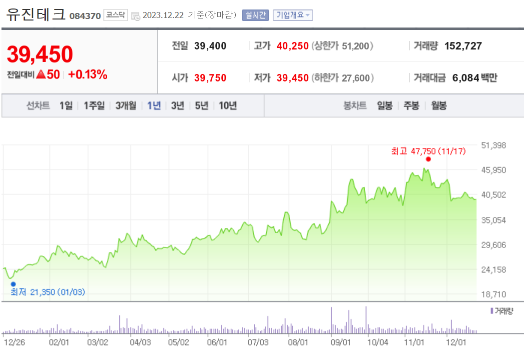 이 글에서는 유진테크 주가 전망과 목표 주가, 기업 정보에 대해서 설명합니다. 주식 투자에서 핵심은 미래의 기업 가치를 예상하고 선제적으로 움직이는 것입니다. 투자 대상을 결정하기 전에 현재 기업의 현황과 수치를 검토하는 것이 필요합니다. 유진테크 주식의 주요 현황과 투자 정보를 확인하시고 주식 투자를 고민하고 계시다면 유용한 정보들을 모아 놓은 자료를 확인해보세요.