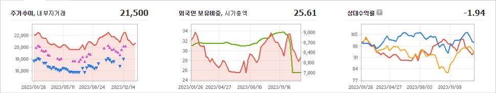 이노션의 현재 주가는 21,500원으로, 전일과 동일한 모습을 보여주고 있습니다. 이노션의 주주현황을 살펴보면 정성이(외 3인)이 지분의 28.73%를 소유하고 있습니다. 이노션은 미디어 기업으로 분류되며, 이노션의 시가 총액은 8600억 원이며, 발행 주식수는 40,000,000주입니다. 외국인 보유 비중은 25.60%이며, 장중 거래량은 82,427주를 기록했습니다. 또한, 이노션은 매출액으로 14,539억 원을 달성했습니다.