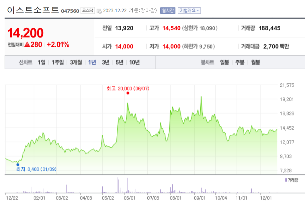 이 글에서는 이스트소프트 주가 전망과 목표 주가, 기업 정보에 대해서 설명합니다. 주식 시장에서 중요한 것은 미래의 기업 가치를 예측하고 선제적으로 움직이는 것입니다. 투자할 종목을 고르기 전에 현재 기업의 현황과 데이터를 확인하는 것이 필요합니다. 이스트소프트 주식의 주요 현황과 투자 정보를 확인하시고 주식 투자에 유용한 정보들을 한 곳에 정리해두었으니 투자 전에 확인하시기 바랍니다.
