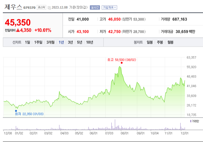 제우스 주가 분석