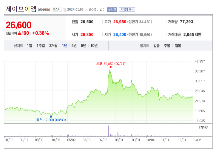제이브이엠 주가 분석