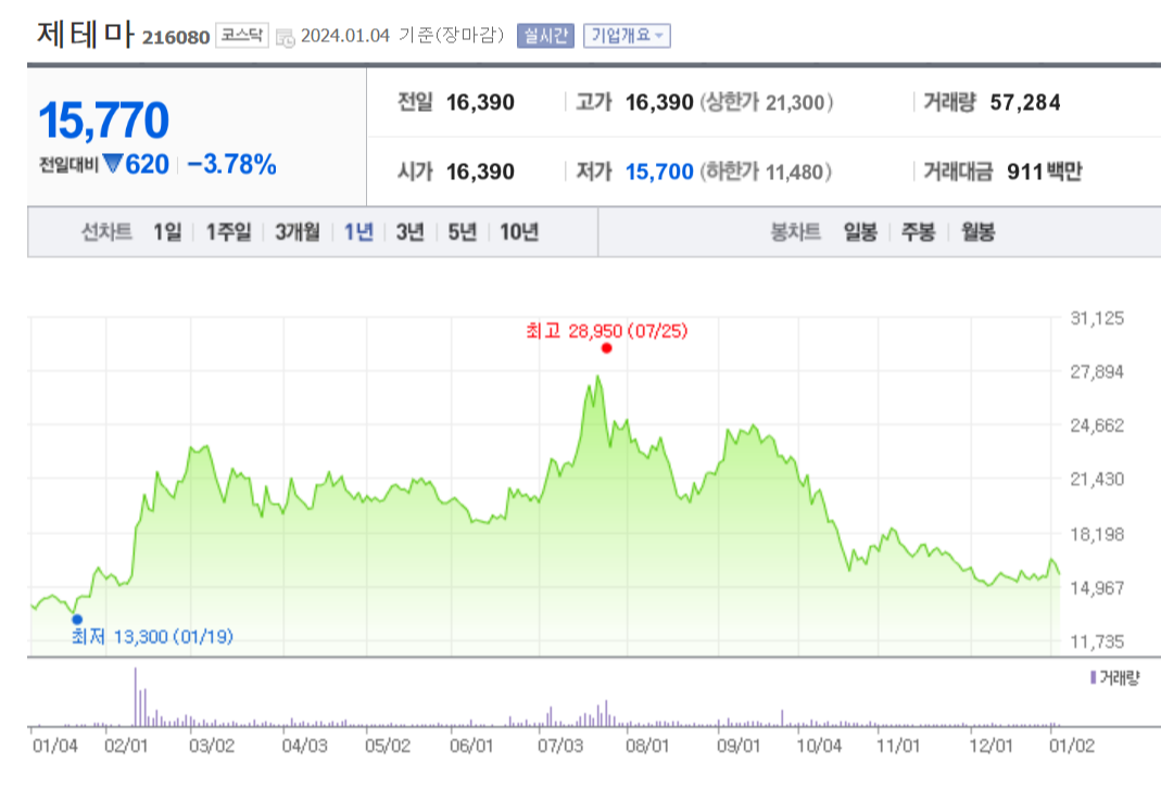 이 글에서는 제테마 주가 전망과 목표 주가, 기업 정보에 대해서 설명합니다. 주식 투자의 중심은 미래의 기업 가치를 예측하고 선제적으로 움직이는 것입니다. 투자할 종목을 고르기 전에 현재 기업 상태와 지표를 살펴야 합니다. 제테마 주식의 주요 현황과 투자 정보를 확인하시고 주식 투자에 도움이 될만한 정보들을 정리해두었으니 참고하여 투자에 도움 받으시기 바랍니다.
