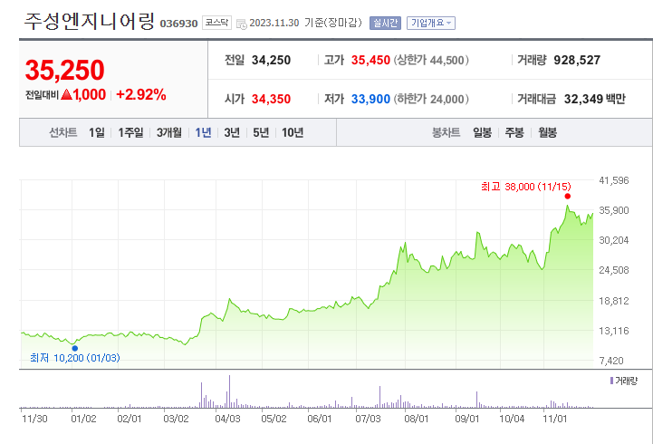 주성엔지니어링, 하락 하루만에 5% 급등…3만5000원선 재돌파 눈앞 < 증시 < 경제 < 기사본문 - 이코노뉴스 (econonews.co.kr)