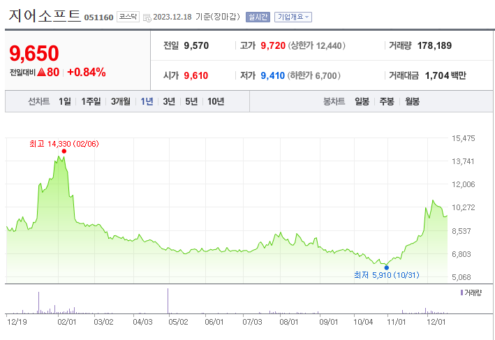 지어소프트 현재 주가는 9,650원이며 전일 대비 +0.84%의 모습을 보이고 있습니다. 지어소프트의 주주현황을 살펴보면 김수철(외 3인)이 지분 22.19%를 소유하고 있습니다. 지어소프트는 도소매 기업으로 시가 총액은 1493억 원이며 발행 주식수는 15,474,430주 입니다. 외국인 보유 비중은 7.02% 이며 장중 거래량은 178,189를 기록했습니다. 매출액은 3,778억 원, 영업이익은 -31억 원을 달성했습니다. EPS는 121원이며 BPS는 8,425원 입니다.