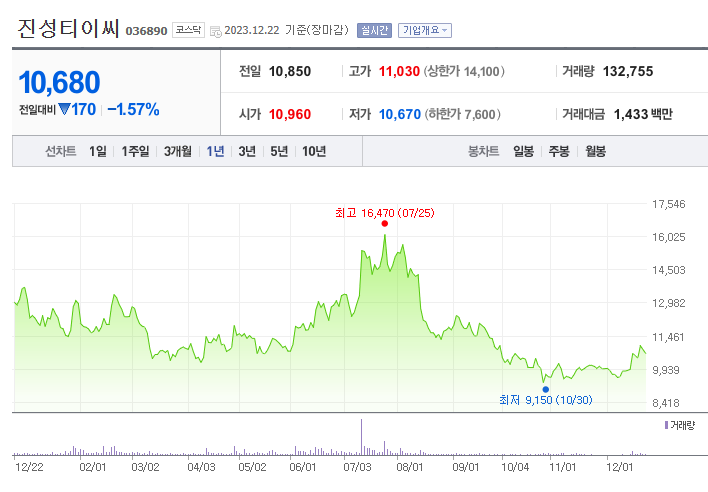 이 글에서는 진성티이씨 주가 전망과 목표 주가, 기업 정보에 대해서 설명합니다. 주식 투자에서 핵심은 미래의 기업 가치를 예상하고 선제적으로 움직이는 것입니다. 투자 대상을 결정하기 전에 현재 기업의 현황과 수치를 검토하는 것이 필요합니다. 진성티이씨 주식의 주요 현황과 투자 정보를 확인하시고 주식 투자에 도움을 줄 자료들을 모아 두었으니 투자 결정에 도움을 받으시길 바랍니다.