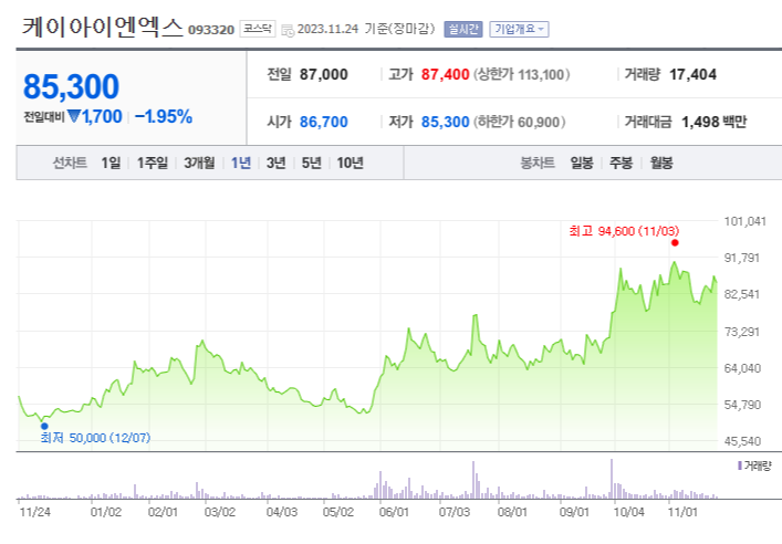 케이아이엔엑스 주가 들썩..."실적 바닥 찍었다" 확산 < 핫이슈 < 뉴스 < 기사본문 - 핀포인트뉴스 (pinpointnews.co.kr)