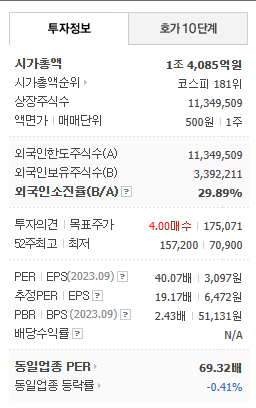 1992년에 설립된 한국의 대표적인 화장품 ODM 전문 기업으로, 화장품 ODM 매출 기준으로는 전 세계에서 가장 큰 기업입니다. 국내외 수많은 브랜드에 화장품을 공급하며, 세계 최대 화장품 그룹인 L그룹을 비롯하여 글로벌 E그룹, S그룹 등에 제품을 공급하고 있습니다. 주요 제품으로는 젤 타입의 아이라이너와 쿠션 파운데이션이 있으며, 젤 타입 아이라이너는 단일 품목으로는 최초로 4천만개 이상을 생산한 성과를 보여주고 있습니다. 2023년 9월까지의 전년동기 대비 연결기준 매출액은 11.8% 증가하였으며, 영업이익은 83.7% 증가하였고, 당기순이익도 37.5% 증가하였습니다. 비수기 시즌임에도 불구하고 한국 법인의 매출은 고성장을 이루었습니다. 미국 법인은 적자를 축소하고, 동남아 법인은 이익을 확대하여 영업이익도 고성장을 기록하였습니다. 또한, 중저가 브랜드의 호조와 일본, 중국, 미국으로의 간접 수출 매출의 견고한 성장, 그리고 신규 인디브랜드 주문의 증가로 인해 해외 직수출 매출도 고성장이 예상됩니다.