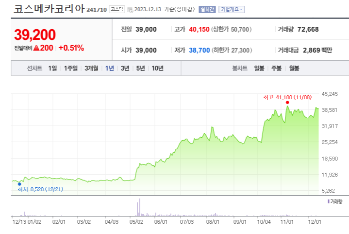 코스메카코리아 주가 어디까지 오를까? < 시황 < 증권 < 기사본문 - 뷰티경제 (thebk.co.kr)