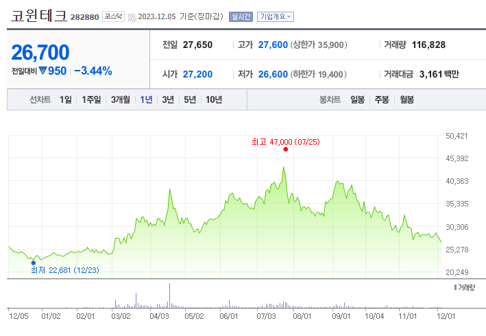 코윈테크 주가 분석