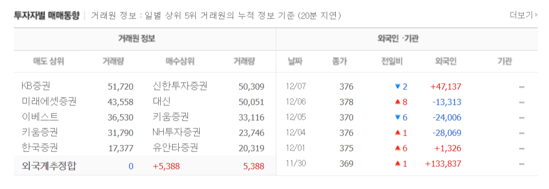 따라서 개인 투자자는 기관이나 외국인 세력을 따르고, 세력이 약해도 어떤 주식을 매수하고 매도하여 이익을 얻습니다. 기관 투자자를 따르는 트렌드가 최근에 더 일반적인 것으로 보이며, 이는 외국인의 매수가 불안정하고 개인의 단기 거래가 기관과 유사하기 때문입니다.