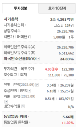 키움증권의 현재 주가는 93,000원이며 전일 대비 +0.11으로 소폭 상승했습니다. 주주현황을 살펴보면 다우기술(외 5인)이 지분의 41.35%를 소유하고 있습니다. 키움증권은 증권 기업으로, 시가 총액은 2조 4365억 원이며 코스피 124위 기업입니다. 발행 주식수는 26,226,706주입니다. 외국인 보유 비중은 24.83%이며, 장중 거래량은 31,109주를 기록했습니다. 또한, 매출액은 4,800억 원을 달성했습니다.