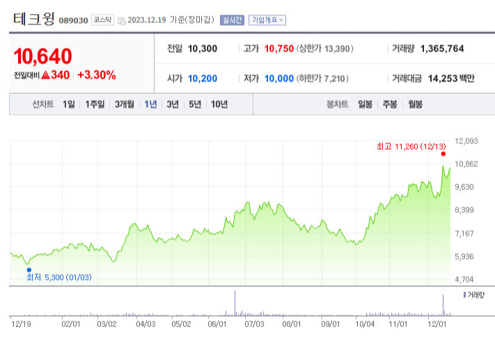 이 글에서는 테크윙 주가 전망과 목표 주가, 기업 정보에 대해서 설명합니다. 주식 시장에서 핵심은 미래의 기업 가치를 예측하고 선제적으로 움직이는 것입니다. 투자할 종목을 선택하기 전에 현재 기업의 현황과 데이터를 확인하는 것이 필요합니다. 테크윙 주식의 주요 현황과 투자 정보를 확인하시고 주식 투자에 유용한 정보들을 한 곳에 정리해두었으니 투자 전에 확인하시기 바랍니다.