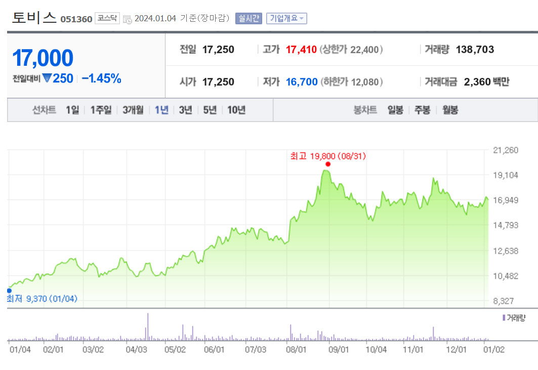 이 글에서는 토비스 주가 전망과 목표 주가, 기업 정보에 대해서 설명합니다. 주식 시장에서 중요한 것은 미래의 기업 가치를 예측하고 선제적으로 움직이는 것입니다. 투자할 종목을 고르기 전에 현재 기업의 현황과 데이터를 확인하는 것이 필요합니다. 토비스 주식의 주요 현황과 투자 정보를 확인하시고 주식 투자에 도움이 될 만한 정보들을 모아 놓았으니 투자 시 참고하시기 바랍니다.