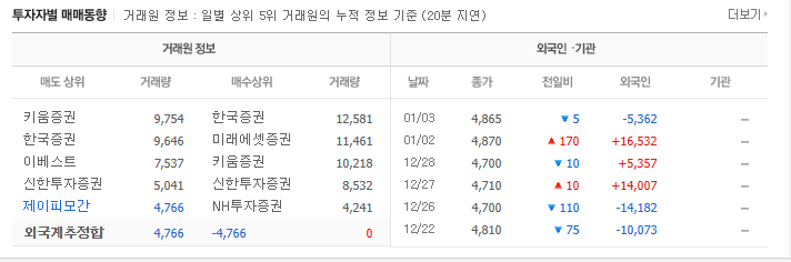 그러므로 개인 투자자는 기관이나 외국인 세력을 따라가지 않을 수 없으며, 세력이 약한 상태에서 어떤 것을 사고 팔아 수익을 창출할 수 있습니다. 최근에는 외국인보다 기관 투자자를 따르는 흐름이 많습니다. 외국인의 매수는 종종 허수로 여겨지고, 개인의 단기 거래는 기관과 유사한 경향이 있습니다.