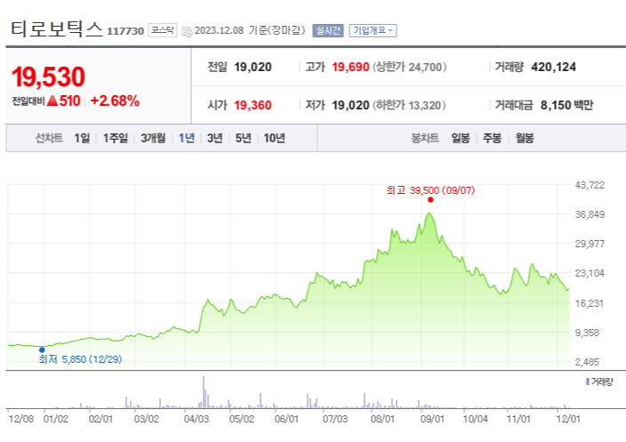 티로보틱스 주가 분석