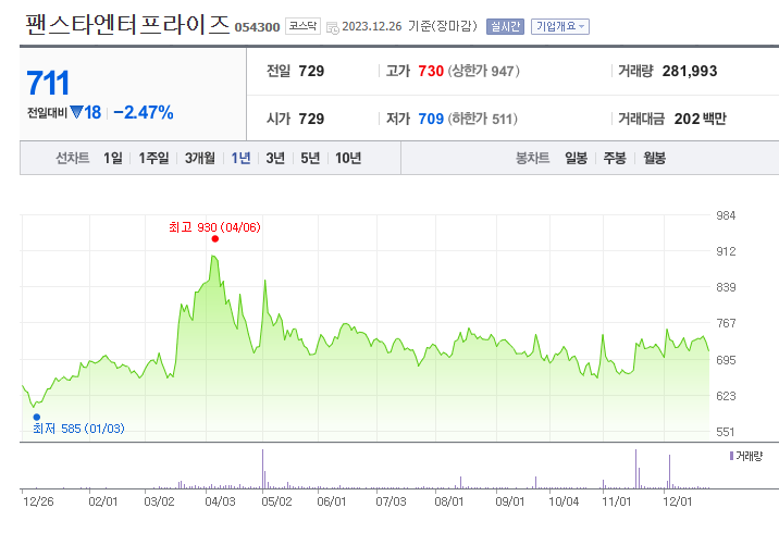 팬스타엔터프라이즈 주가 분석