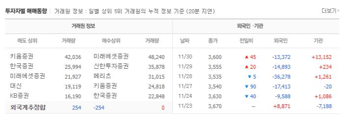 그 때문에 개인 투자자는 기관이나 외국인 세력을 따르고, 세력이 약해도 어떤 주식을 사고 팔아 수익을 창출합니다. 최근에 외국인보다 기관 투자자를 따르는 경향이 더 큰데, 외국인의 매수가 종종 불확실하고 개인의 단기 거래가 기관과 유사하기 때문입니다.