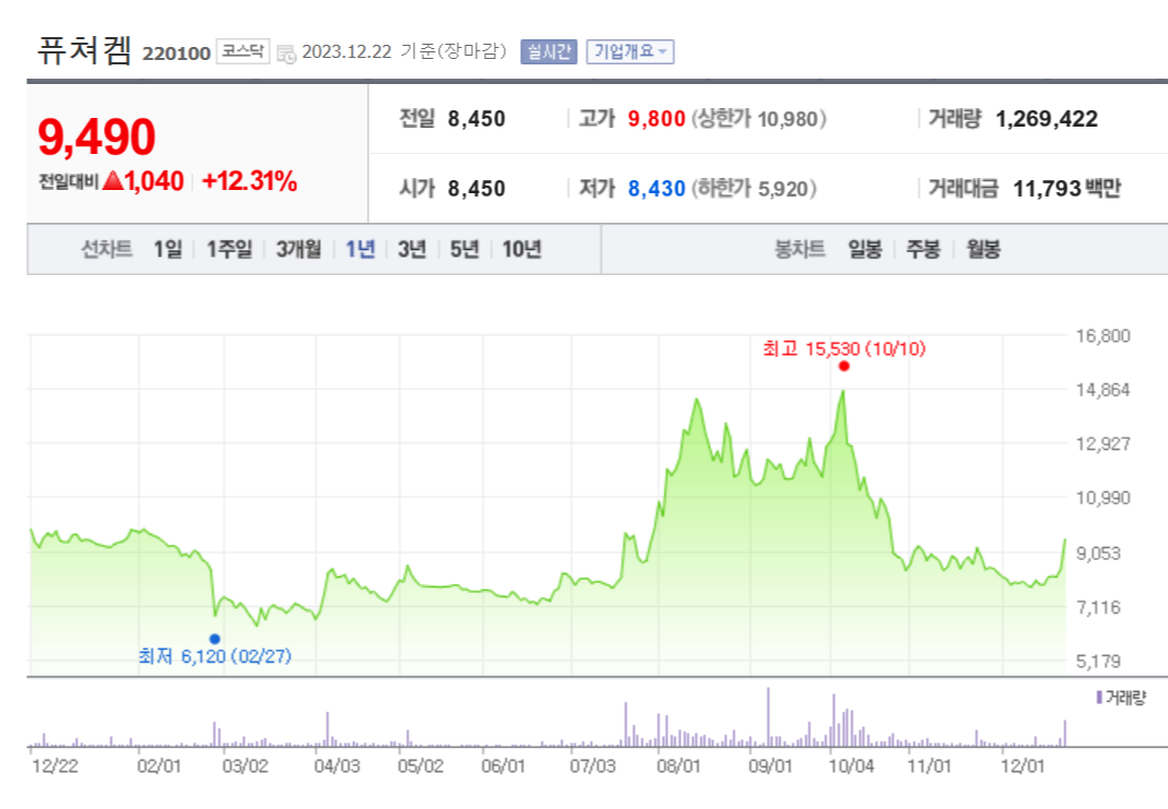이 글에서는 퓨쳐켐 주가 전망과 목표 주가, 기업 정보에 대해서 설명합니다. 주식 거래에서 중요한 부분은 현재 기업 가치보다는 미래의 기업 가치를 예측하고 먼저 행동하는 것입니다. 투자할 종목을 고르기 전에 현재 기업의 상황과 지표를 살펴보는 것이 중요합니다. 퓨쳐켐 주식의 주요 현황과 투자 정보를 확인하시고 주식 투자를 위한 유용한 자료들을 모아놓았으니 투자 시 참고하시면 도움이 될 것입니다.