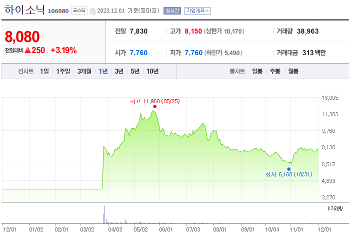하이소닉는 휴대폰 및 관련부품 기업으로 주가는 8,080원이며 전일 대비 +3.19%의 모습을 보이고 있습니다. 하이소닉의 주주현황을 살펴보면 아노28(외 2인)이 지분 32.92%를 소유하고 있습니다. 하이소닉의 시가 총액은 1217억 원이며 발행 주식수는 15,056,315주 입니다. 외국인 보유 비중은 0.72% 이며 장중 거래량은 38,902를 기록했습니다. 매출액은 105억 원, 영업이익은 7억 원을 달성했습니다. EPS는 -296원이며 BPS는 1,167원 입니다.