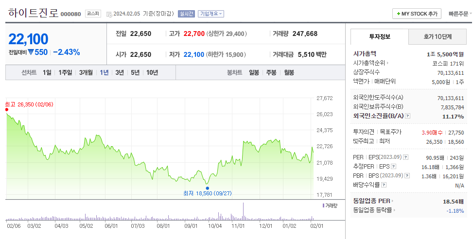 하이트진로 주가 분석