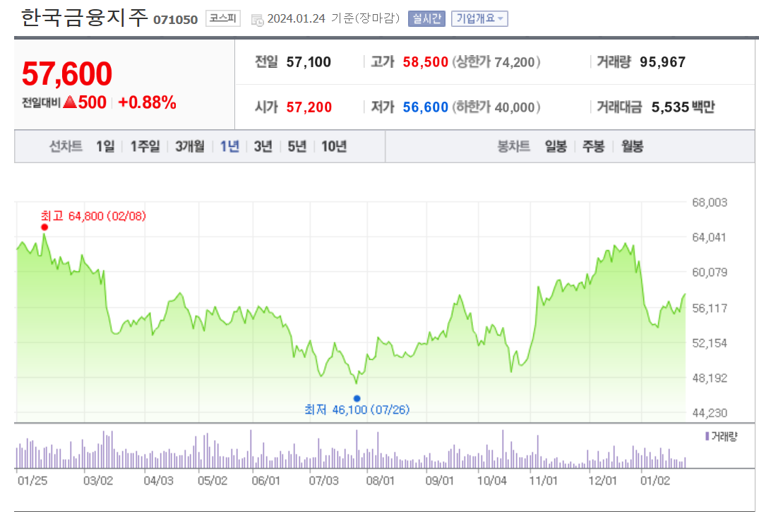 한국금융지주 주가 분석