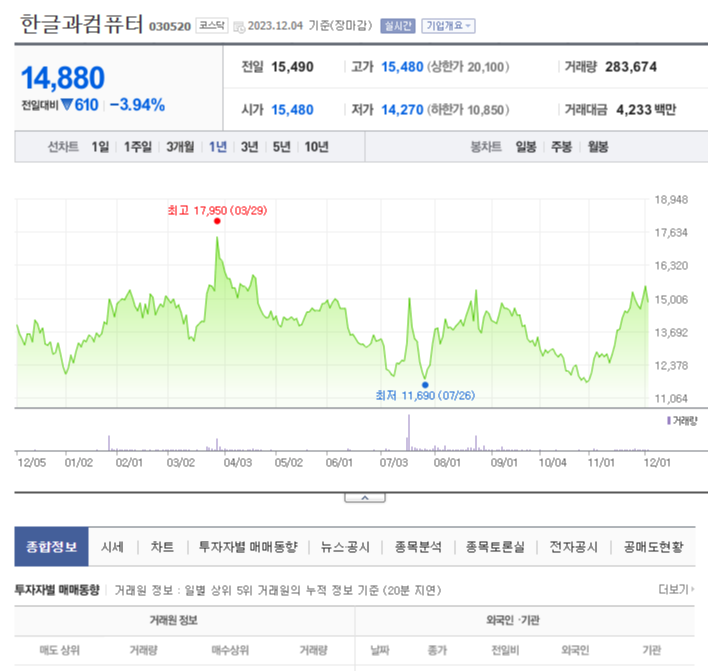 한글과컴퓨터 주가 분석