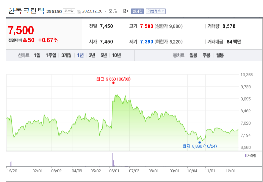 한독크린텍 주가 분석