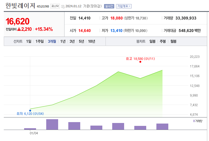 한빛레이저 주가, 상승세 어디까지..? < 경제일반 < 경제 < 기사본문 - 금강일보 (ggilbo.com)