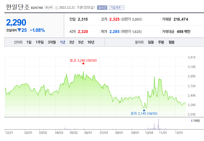 한일단조 주가 분석