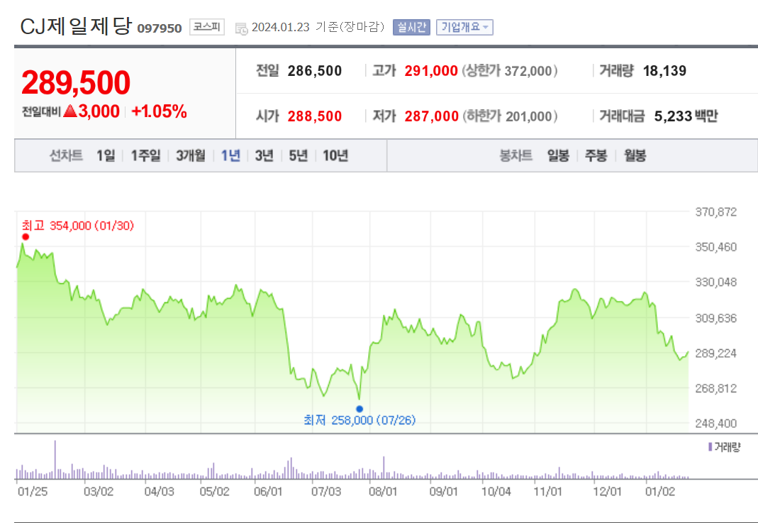이 글은 CJ제일제당 주가 전망과 목표 주가, 기업 정보에 대해 설명하고 있습니다. 주식 투자에서 핵심은 미래의 기업 가치를 예측하고 선제적으로 움직이는 것입니다. 투자 대상을 결정하기 전에 현재 기업의 상황과 수치를 검토하는 것이 필요합니다. CJ제일제당 주식의 주요 상황과 투자 정보를 확인하고, 주식 투자에 도움을 줄 자료들을 모아두었으니, 끝까지 읽어보시고 투자에 도움을 받으시길 바랍니다.