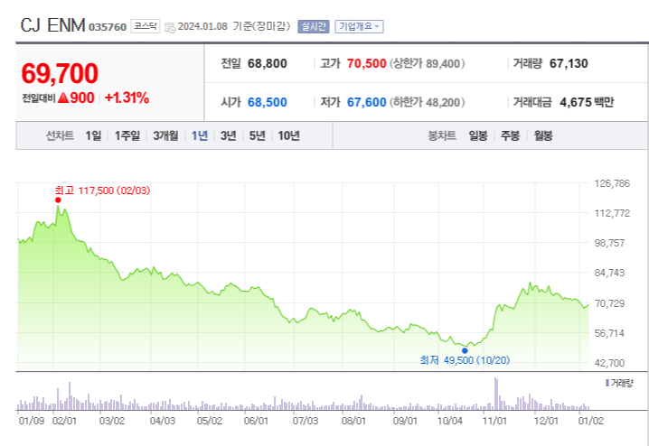 이 글에서는 CJ ENM 주가 전망과 목표 주가, 기업 정보에 대해서 설명합니다. 주식 투자에서 핵심은 미래의 기업 가치를 예상하고 선제적으로 움직이는 것입니다. 투자 대상을 결정하기 전에 현재 기업의 현황과 수치를 검토하는 것이 필요합니다. CJ ENM 주식의 주요 현황과 투자 정보를 확인하시고 주식 투자에 도움이 될 만한 정보들을 모아 놓았으니 투자 시 참고하시기 바랍니다.