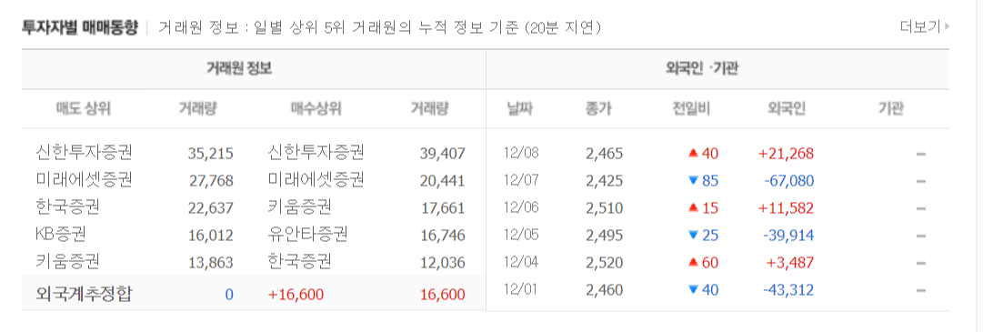 이 때문에 개인 투자자는 기관이나 외국인 세력의 추세를 따라가고, 약한 세력에서도 수익을 창출하는 것이 가능합니다. 기관 투자자를 따르는 트렌드가 최근에 더 일반적인 것으로 보이며, 이는 외국인의 매수가 불안정하고 개인의 단기 거래가 기관과 유사하기 때문입니다.