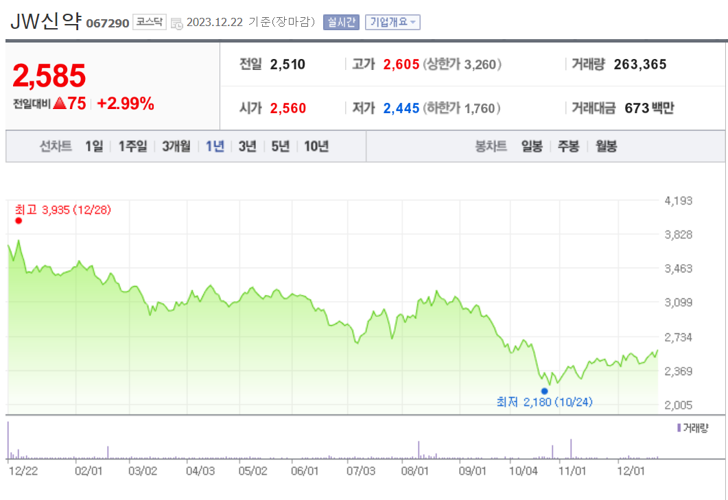 이 글에서는 JW신약 주가 전망과 목표 주가, 기업 정보에 대해서 설명합니다. 주식 거래에서 주목해야 할 점은 미래의 기업 가치를 예측하고 먼저 움직이는 것입니다. 투자 대상을 선택하기 전에 현재 기업 상황과 지표를 살펴보아야 합니다. JW신약 주식의 주요 현황과 투자 정보를 확인하시고 주식 투자에 유용한 정보들을 한 곳에 정리해두었으니 투자 전에 확인하시기 바랍니다.