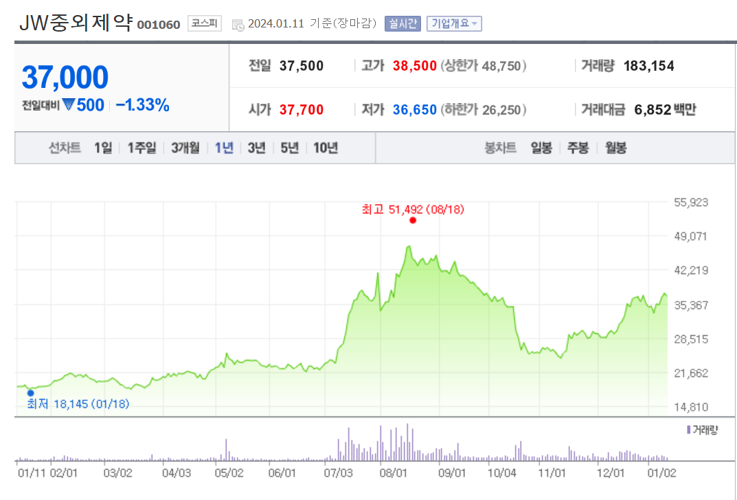 이 글은 JW중외제약 주가 전망과 목표 주가, 기업 정보에 대해 설명합니다. 주식 투자에서 핵심은 미래의 기업 가치를 예상하고 선제적으로 움직이는 것입니다. 투자 대상을 결정하기 전에 현재 기업의 상황과 수치를 검토하는 것이 필요합니다. JW중외제약 주식의 주요 현황과 투자 정보를 확인하고 주식 투자에 도움이 될 자료들을 모아두었습니다. 이 글을 끝까지 읽어보시고 투자에 도움을 받으시길 바랍니다.
