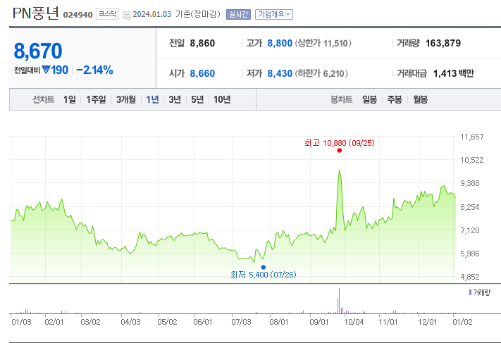 이 글에서는 PN풍년 주가 전망과 목표 주가, 기업 정보에 대해서 설명합니다. 주식 시장에서 중요한 것은 미래의 기업 가치를 예측하고 선제적으로 움직이는 것입니다. 투자 대상을 선택하기 전에 현재 기업의 현황과 데이터를 확인하는 것이 필요합니다. PN풍년 주식의 주요 현황과 투자 정보를 확인하시고 주식 투자에 도움을 줄 자료들을 모아 두었으니 투자에 도움을 받으시길 바랍니다.