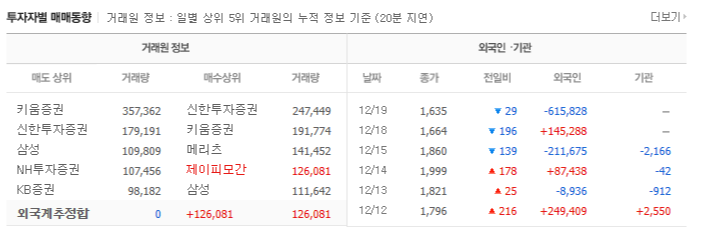 그 때문에 개인 투자자는 기관이나 외국인 세력을 따르며, 약한 세력 속에서도 어떤 것을 매수하고 매도해 이익을 냅니다. 기관 투자자를 따르는 트렌드가 최근에 더 일반적인 것으로 보이며, 이는 외국인의 매수가 불안정하고 개인의 단기 거래가 기관과 유사하기 때문입니다.