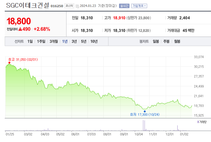 SGC이테크건설 주가 분석